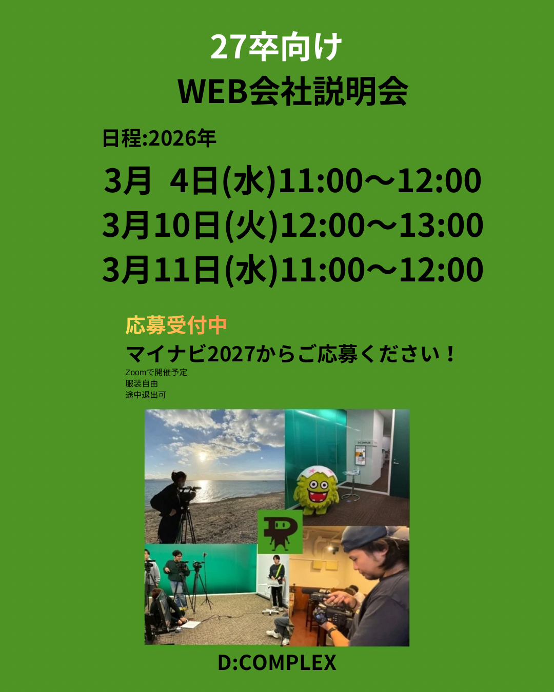 2027年3月に卒業予定の学生の皆さまを対象にオンライン会社説明会を開催いたします。